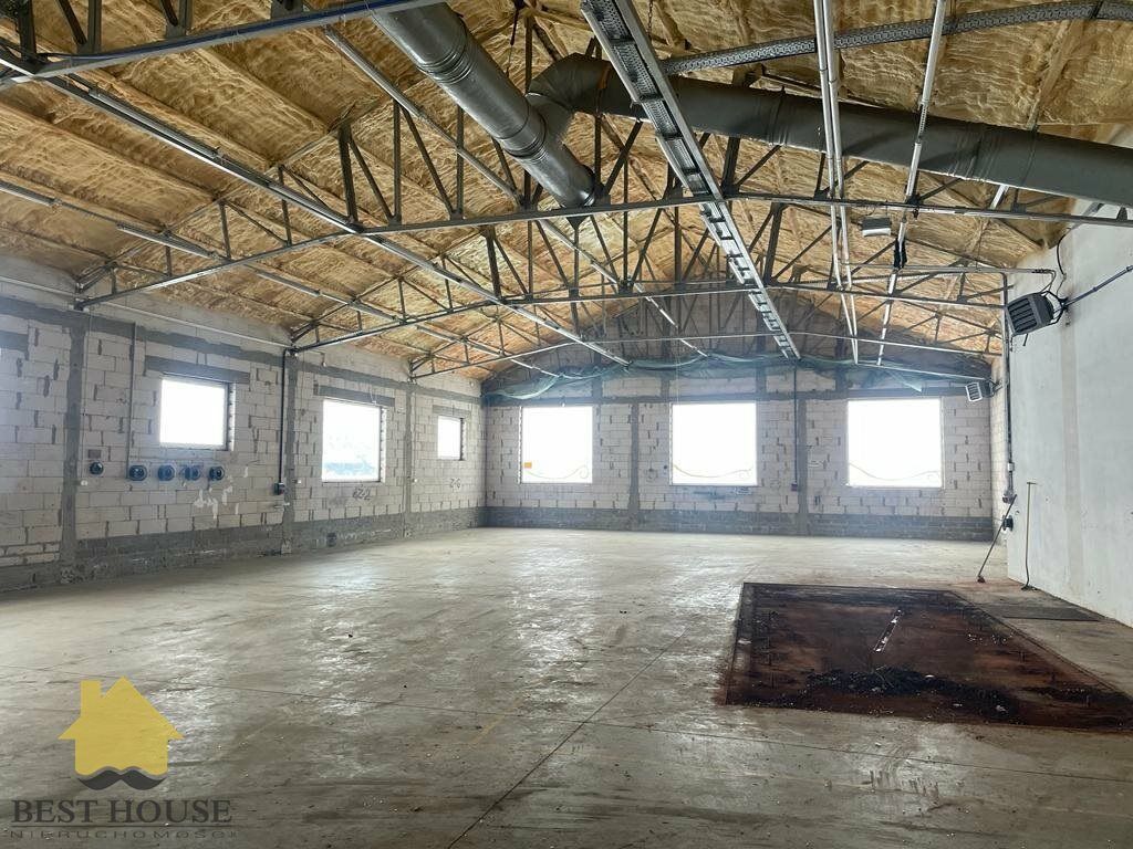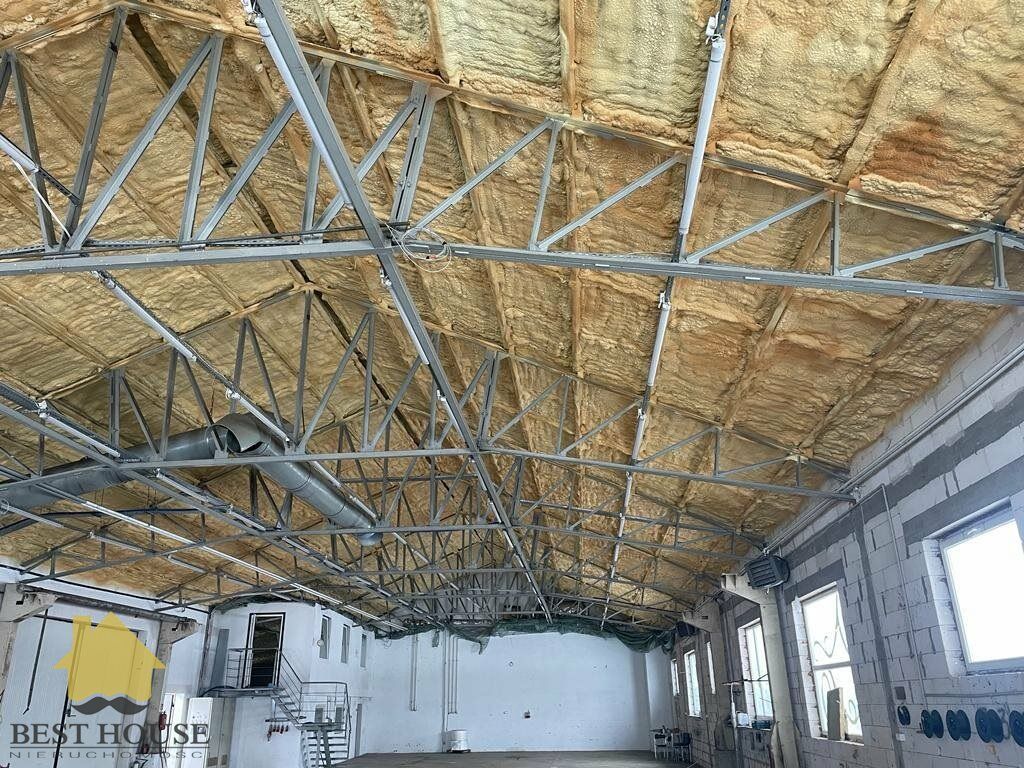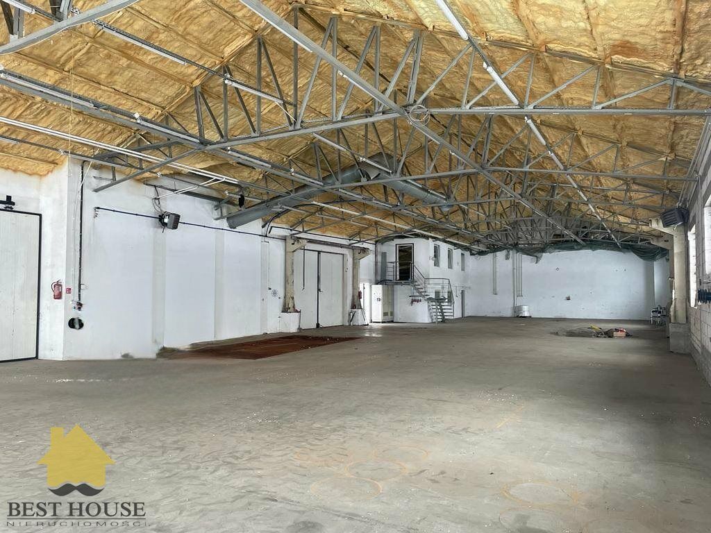 Przestronna i dobrze oświetlona hala produkcyjna, idealna do prowadzenia różnorodnych działalności produkcyjnych i magazynowych.